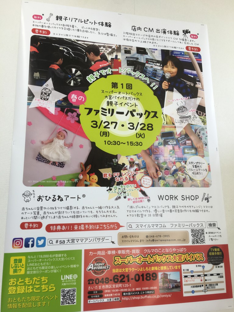 親子で楽しめる企画が盛りだくさんです! 0歳の赤ちゃんから小学生まで楽しめるイベント満載です!! イベントの詳細はこちら⇒http://smilemamacom.jp/saomiya_familybacs_2017sp/ -
