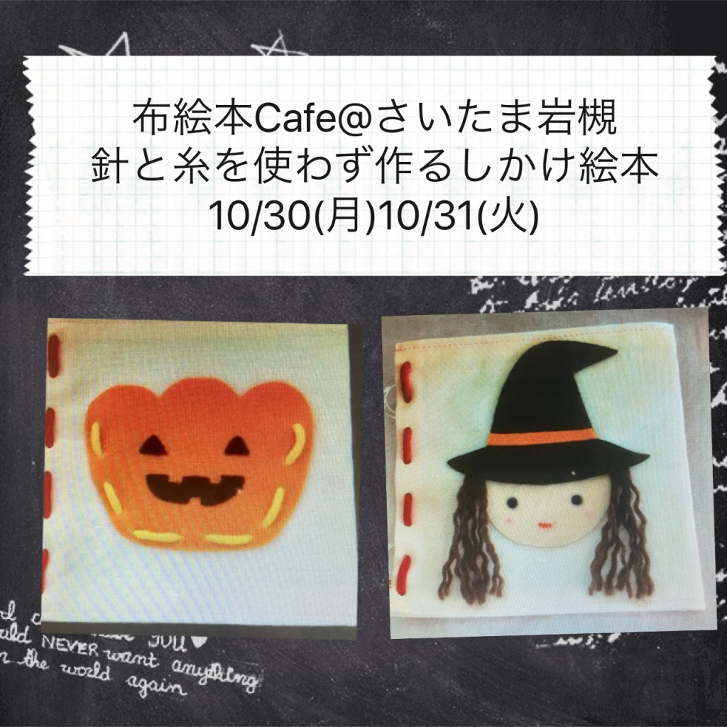 ~針と糸を使わずに作れる布絵本 ~■開催日:10/30(月)10/31(火) 10:30~12:00 (3組様) ■場所:講... -