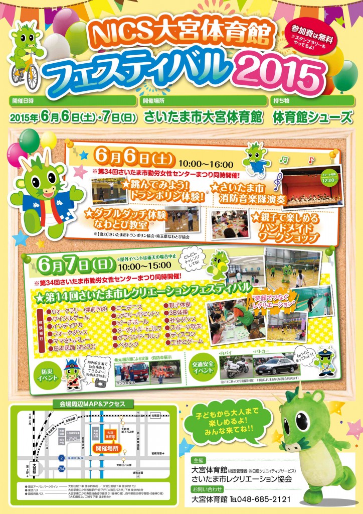 【終了】遊びに来てね!「NICS大宮体育館フェスティバル2015&さいたま市勤労女性センターまつり」
