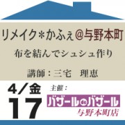 一般の衣料品に加え、着物や和布、レトロな布地やボタンなどのハンドメイド用品も扱うショップバザールdeバザールのワークショップスペースにて毎月開催しております。