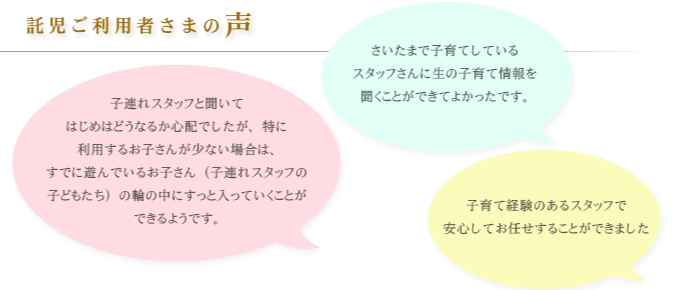 *託児を承るお子さん3人までは、スタッフを2人配置させていただきます