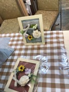 フレームに貝殻やウッドボタンなどをデコレーションして、夏らしい、涼しげな作品をみなさん作り上げていくことができました。